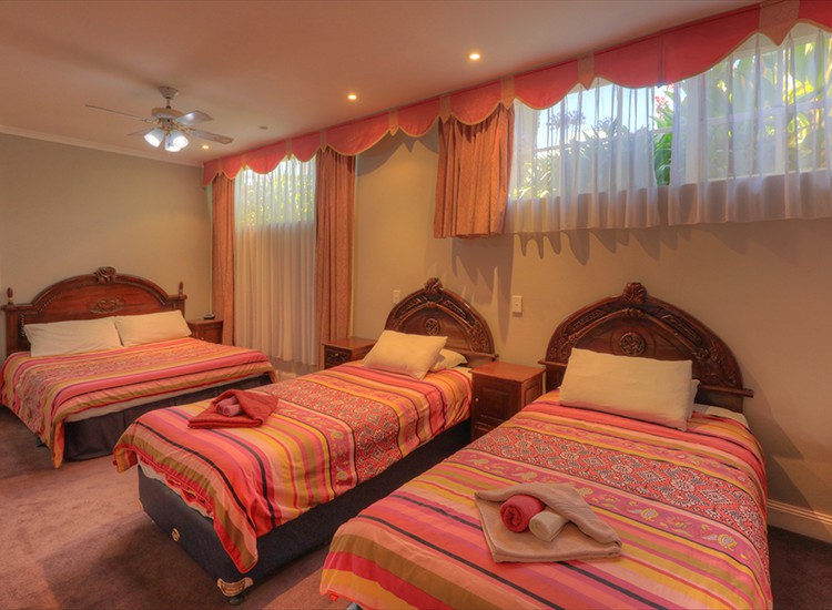 Palstyn Suite has 2 bedrooms, the main bedroom is an internal room with a Queen Sized Bed and the other room has one Queen Size Bed and 2 single beds.